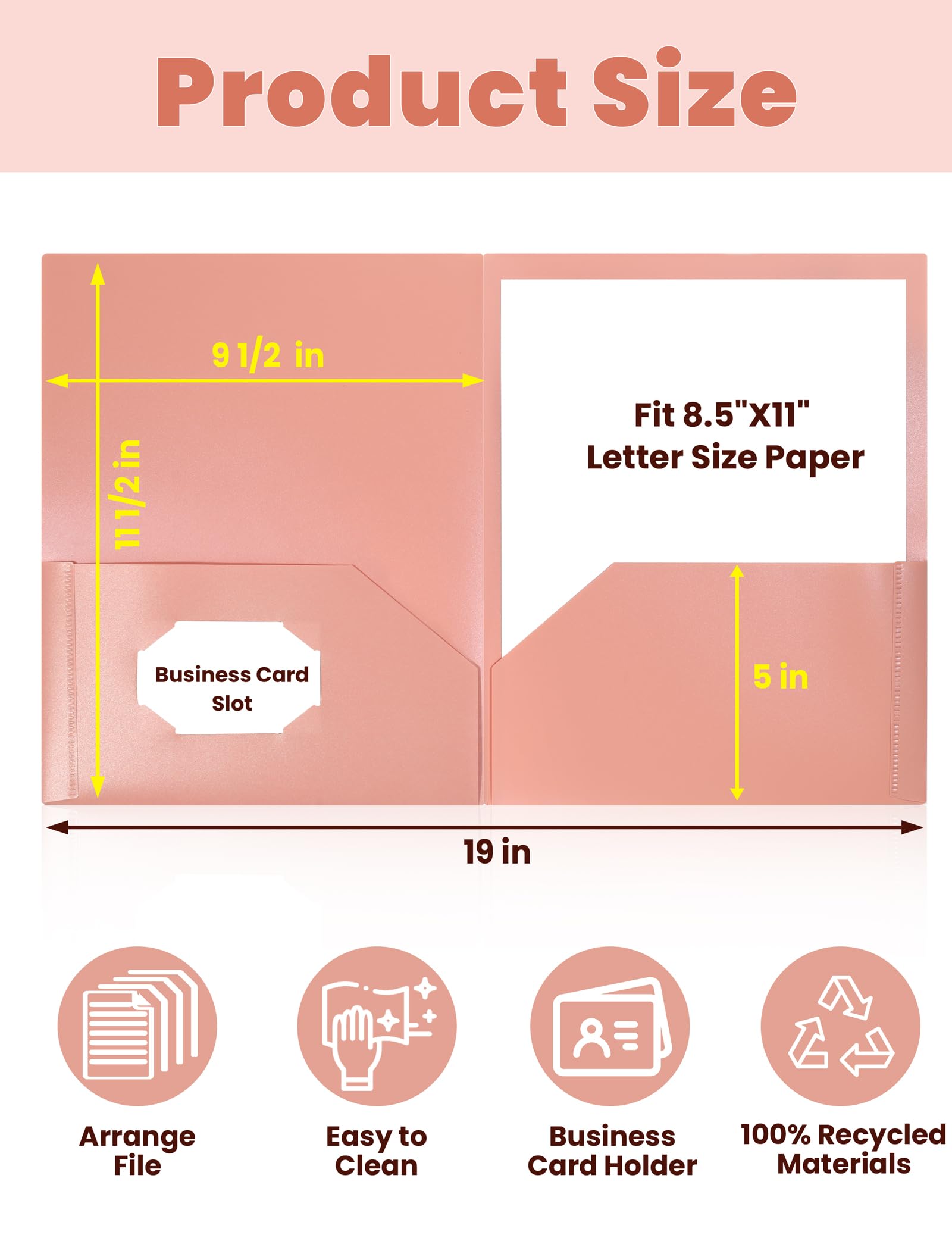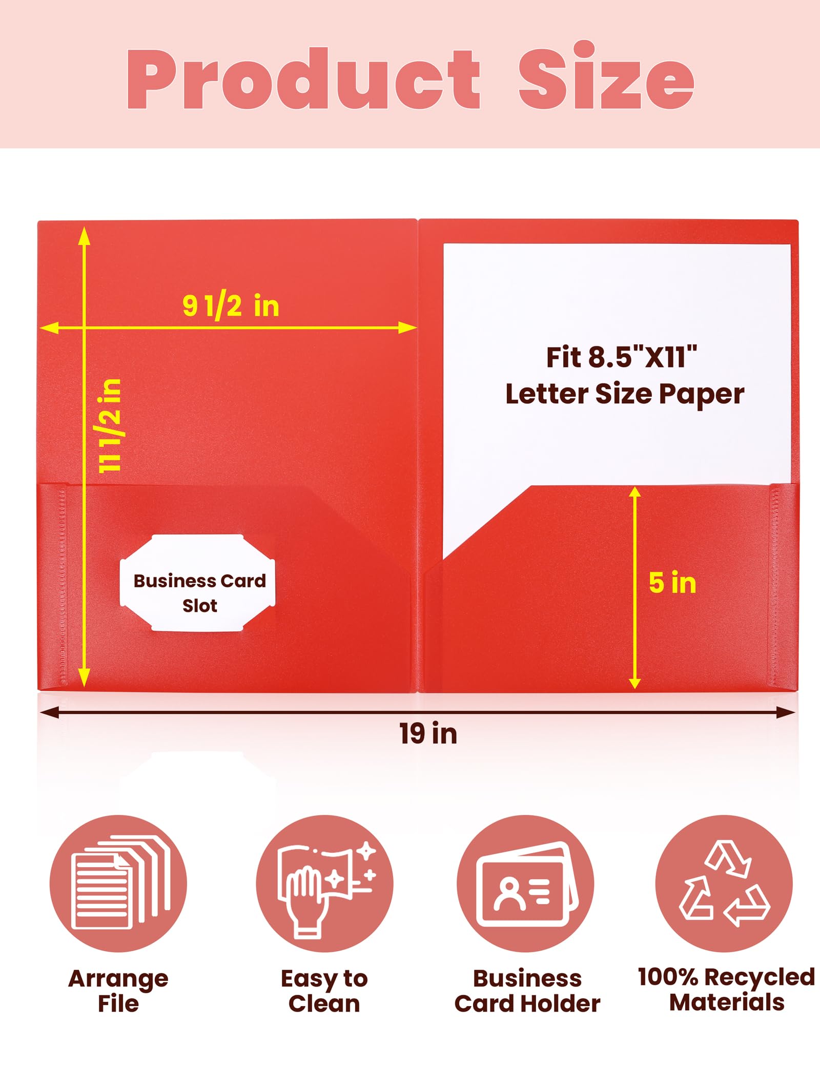 【Letter-Size Folders】The two-pocket folder with pockets measures 9.5" x 11.5". Each 2-pocket folder is designed to hold 11" x 8.5" paper, ensuring compatibility with standard letter-sized documents. Perfect for reports, presentations, or any letter-sized materials you need to organize.
