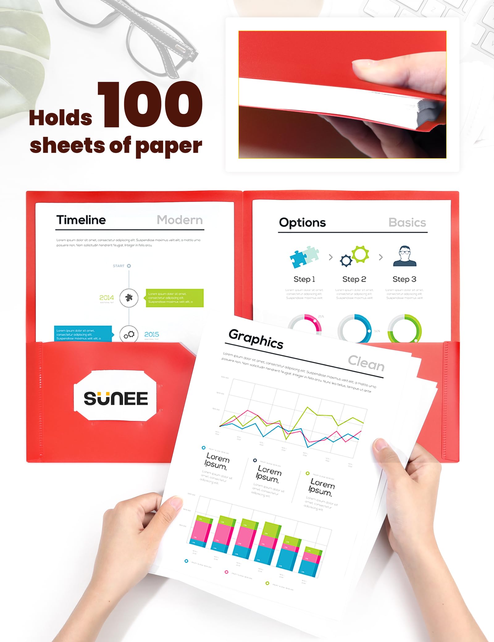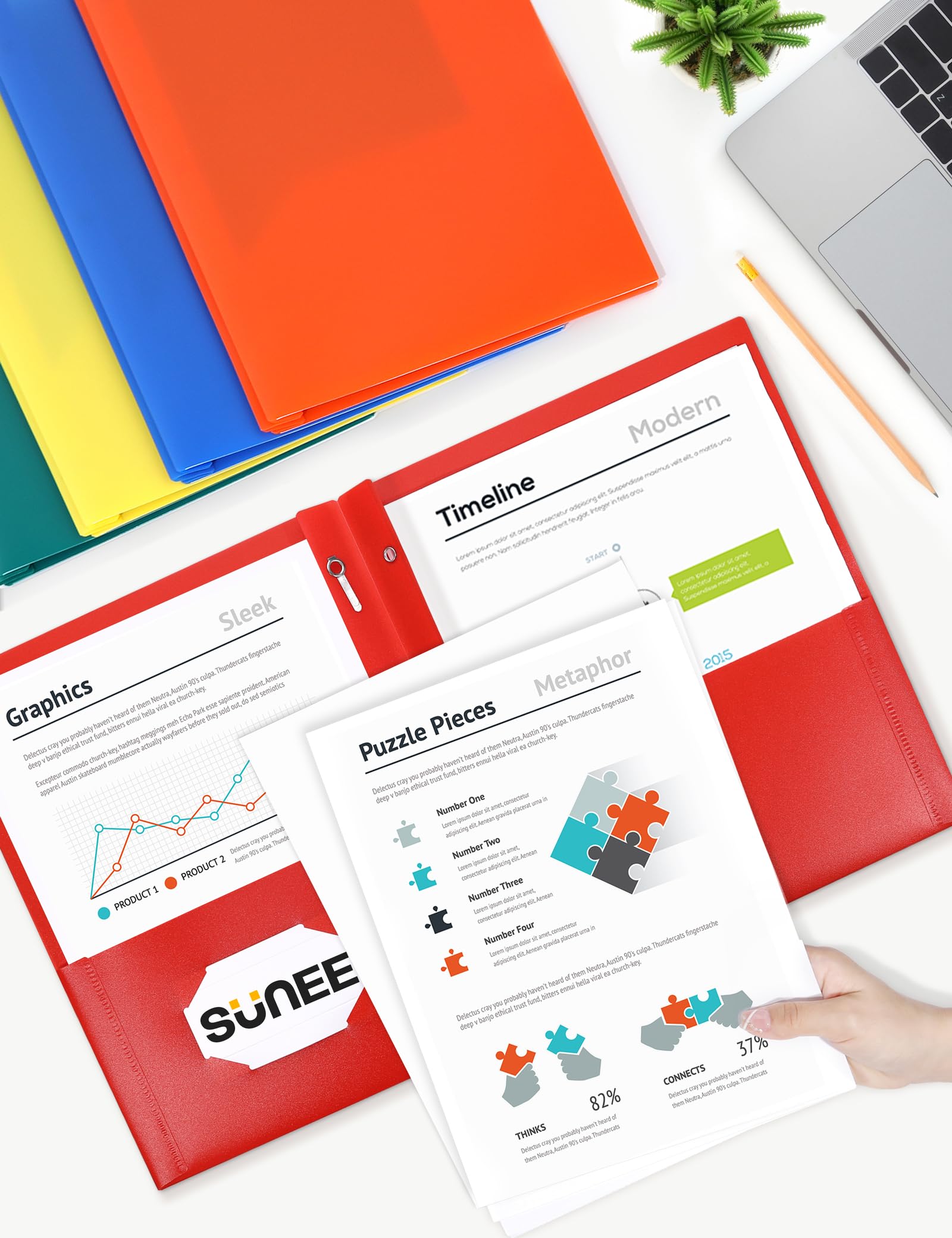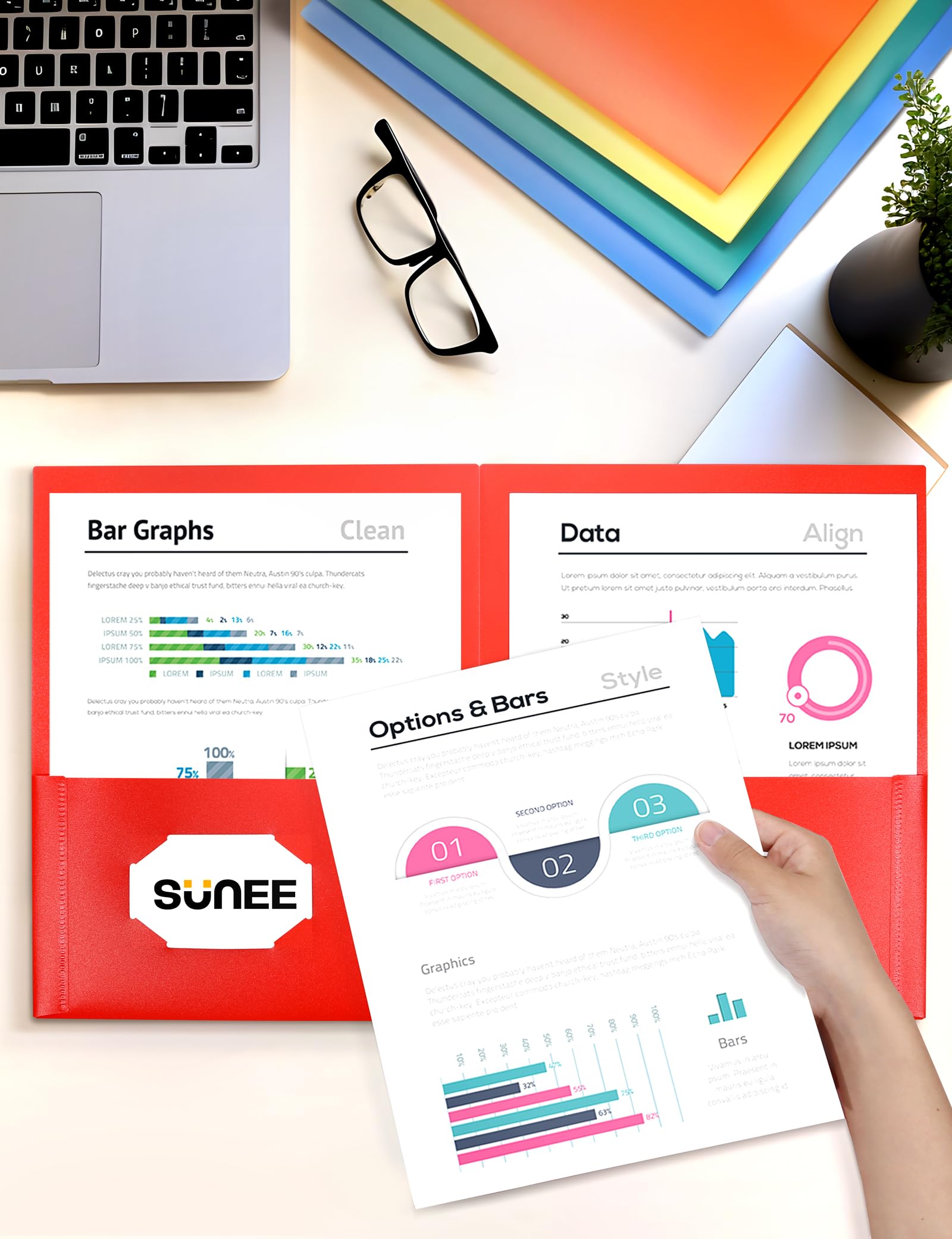 【Ideal for Various Settings】Whether you're a student, a professional, or someone managing household paperwork, these folders are designed to meet your diverse needs. SUNEE 2 Pocket Folders are a practical and environmentally conscious choice for classrooms, offices, and home organizations.