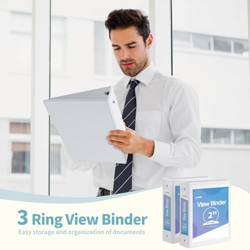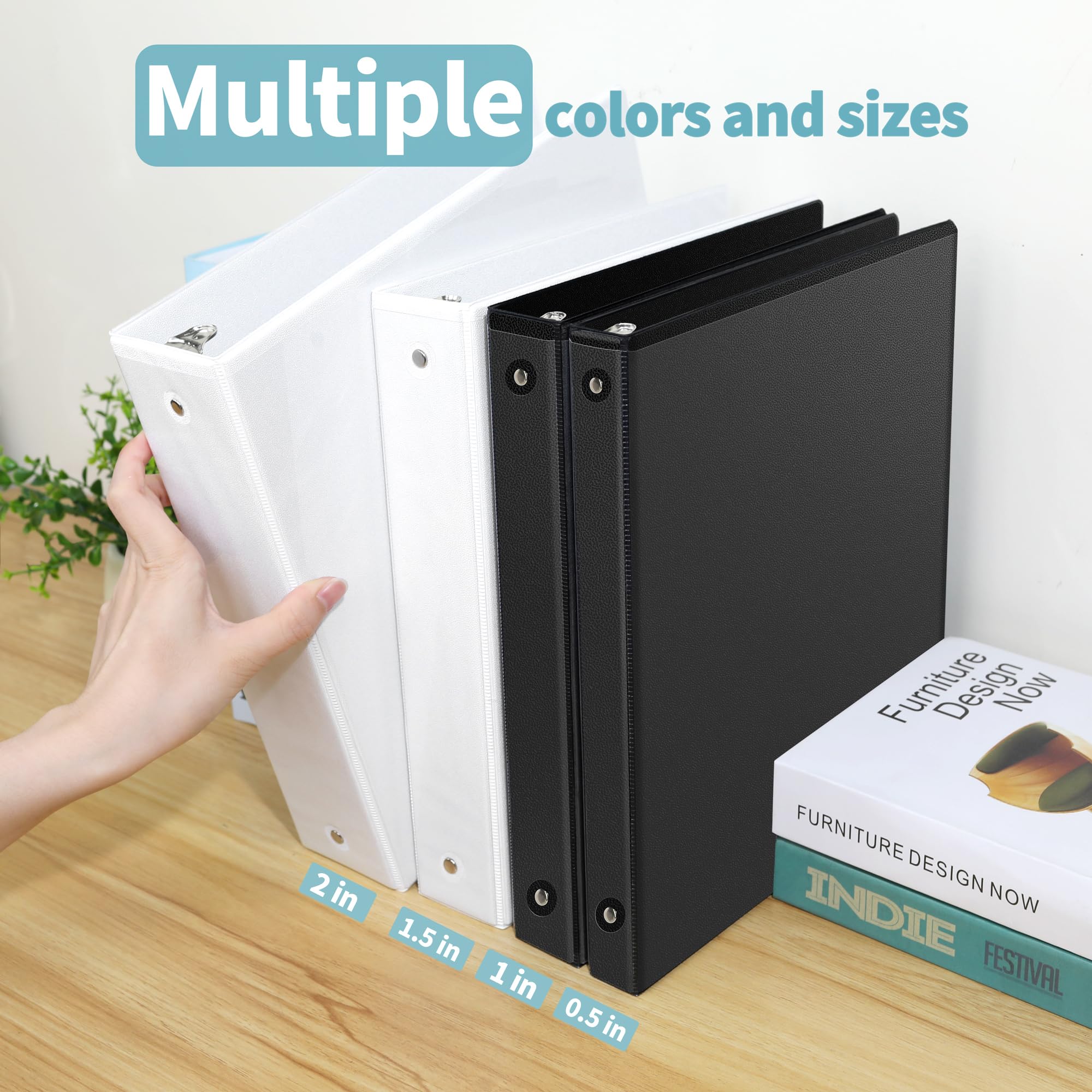 【1 INCH CLEAR VIEW BINDER】3 ring binder set 2-pack is white. The bright colors brings a high quality feel and a more elegant look. The front and back pockets are transparent and can hold up to 8.5x11 paper. The spine of the office binders can also insert some small strips of paper for document classification.