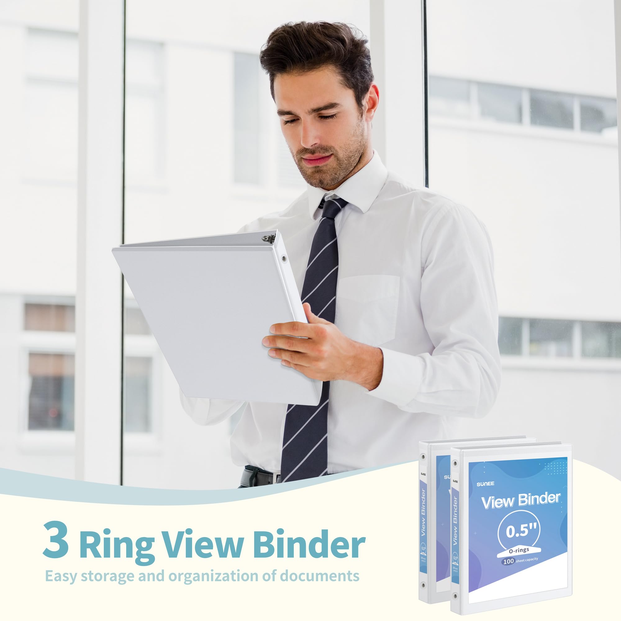SUNEE 3 Ring View Binder PVC-Free Fit 8.5x11" Paper and Sleeves -White