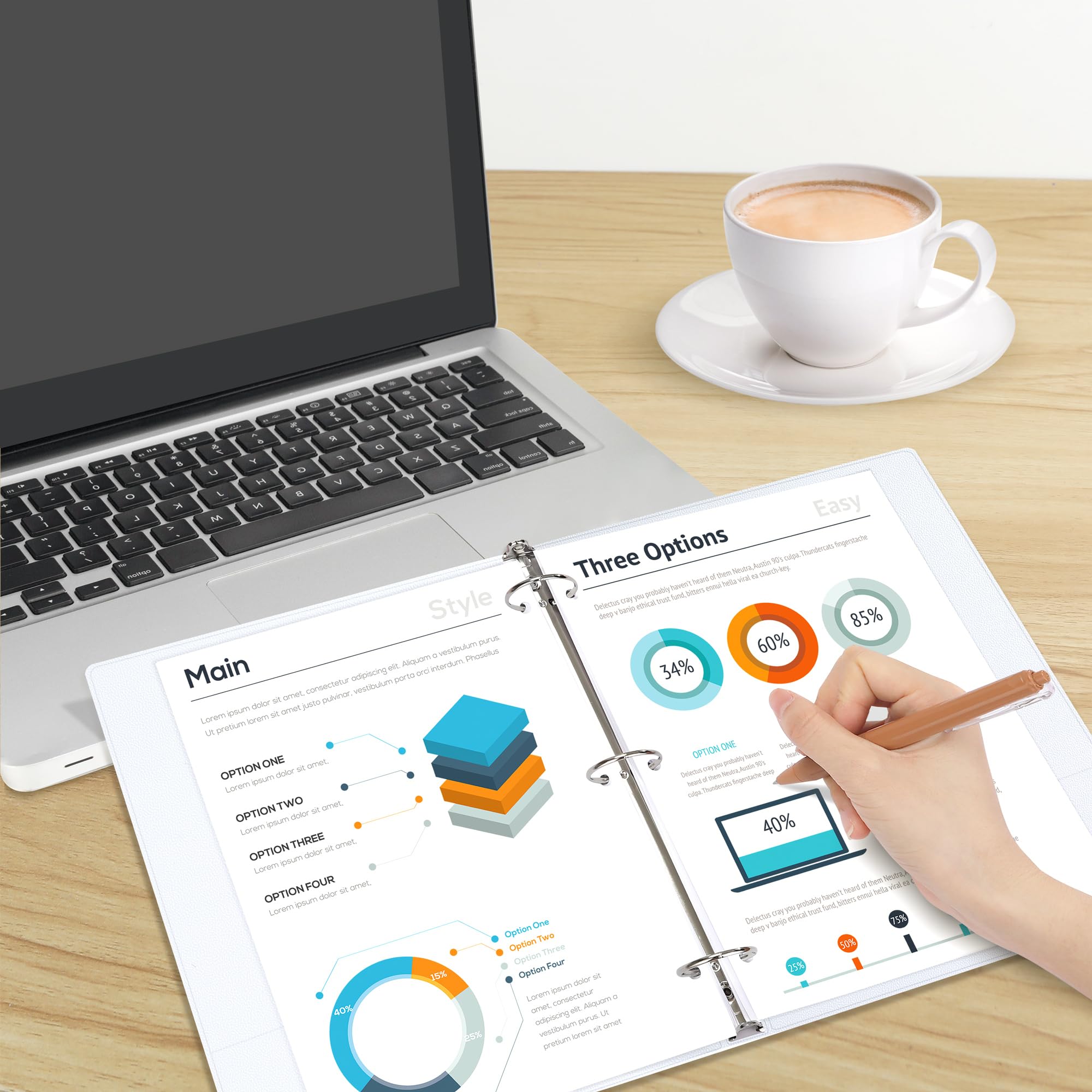【LONG-TERM PRESERVATION】The 1 inch 3 ring binder with clear pocket cover is made of sturdy material and is moisture and dust resistant. This 1 inch binder is PVC-free and non-stick. The color will always remain without fading during use. The durable rounded edges have a corner grinding process, which effectively prevents wear and tear.