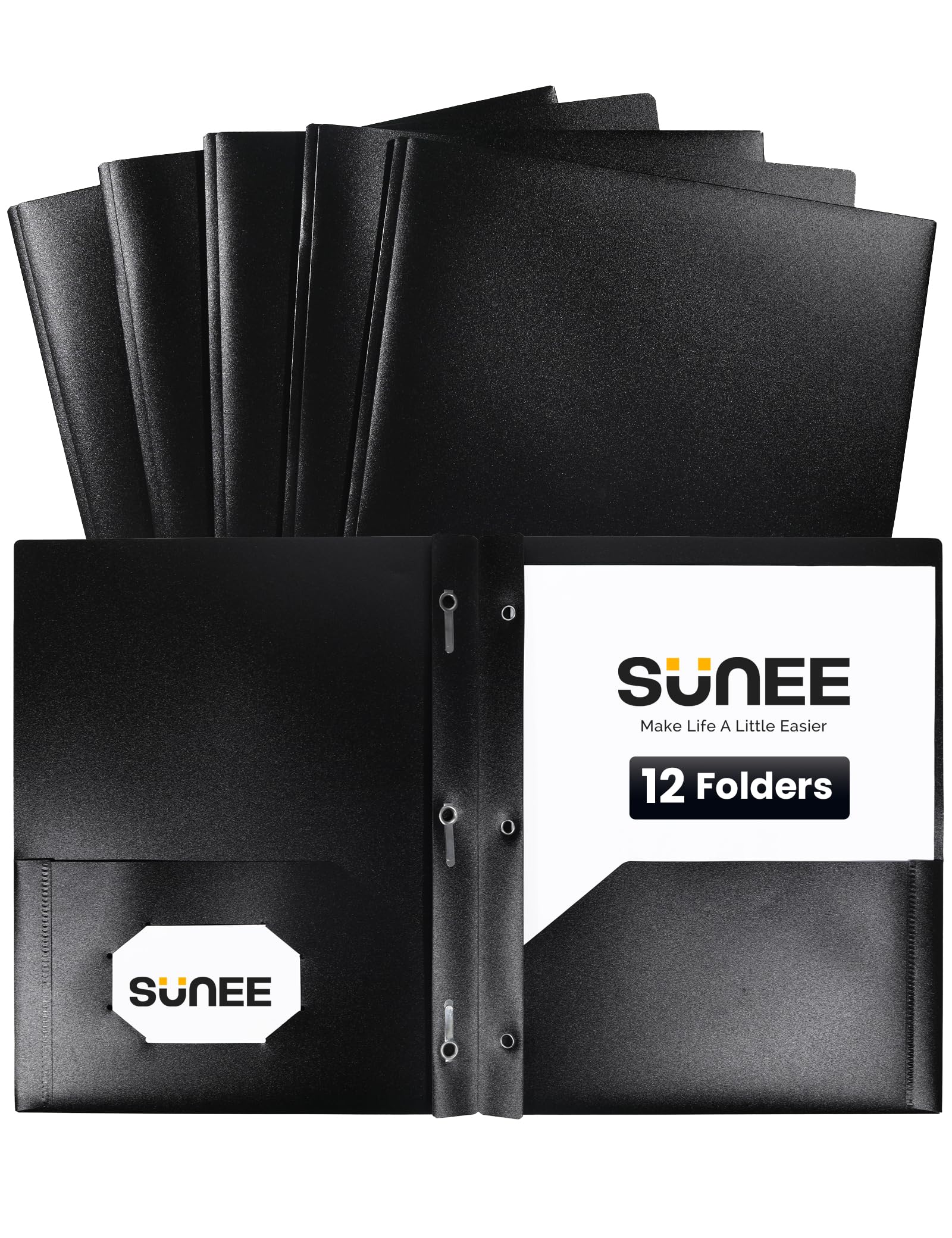 SUNEE's 12-pack of black plastic folders combines durability with practicality for efficient document management. Each letter-sized folder (9 x 11.5 inches) features sturdy pockets and prongs, securely holding papers in place while allowing easy organization and quick access. Ideal for professionals and students, these folders provide a sleek, long-lasting solution to keep important documents neat and protected. Their robust construction ensures reliable use in both office and academic environments.