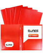 This 12-pack of SUNEE red plastic folders is designed for durability and organization. Each letter-sized folder (9 x 11.5 inches) features built-in pockets and prongs, allowing you to securely store and access documents with ease. Ideal for professional or academic use, these folders help maintain order while protecting important papers from damage. Their sturdy plastic construction ensures long-lasting performance in demanding environments.