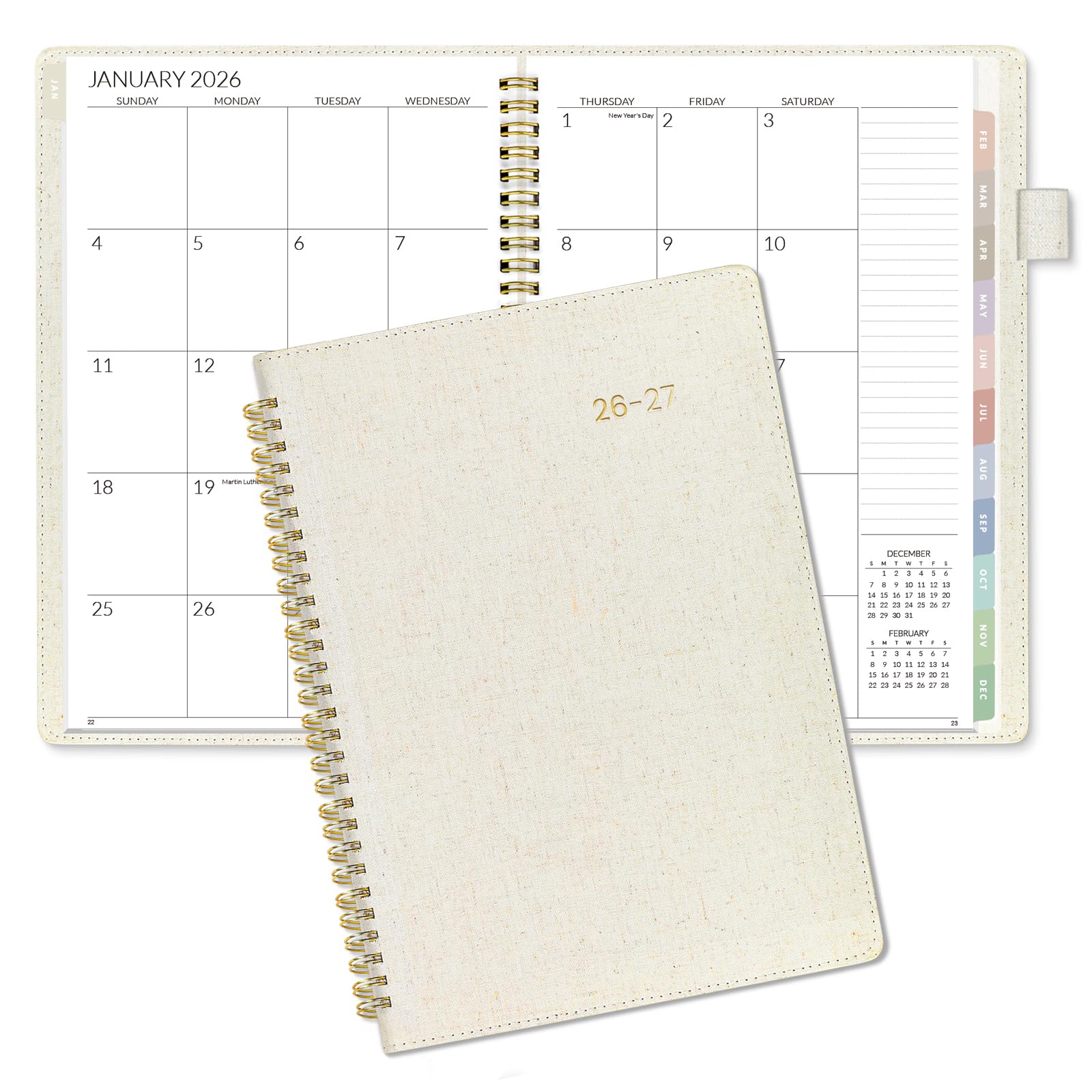 SUNEE 2026-2027 Monthly Planner 7.3"x10.1" - 2-Year (Jan 2026 - Dec 2027), Linen Cover Monthly Planner Year Calendar, Beige