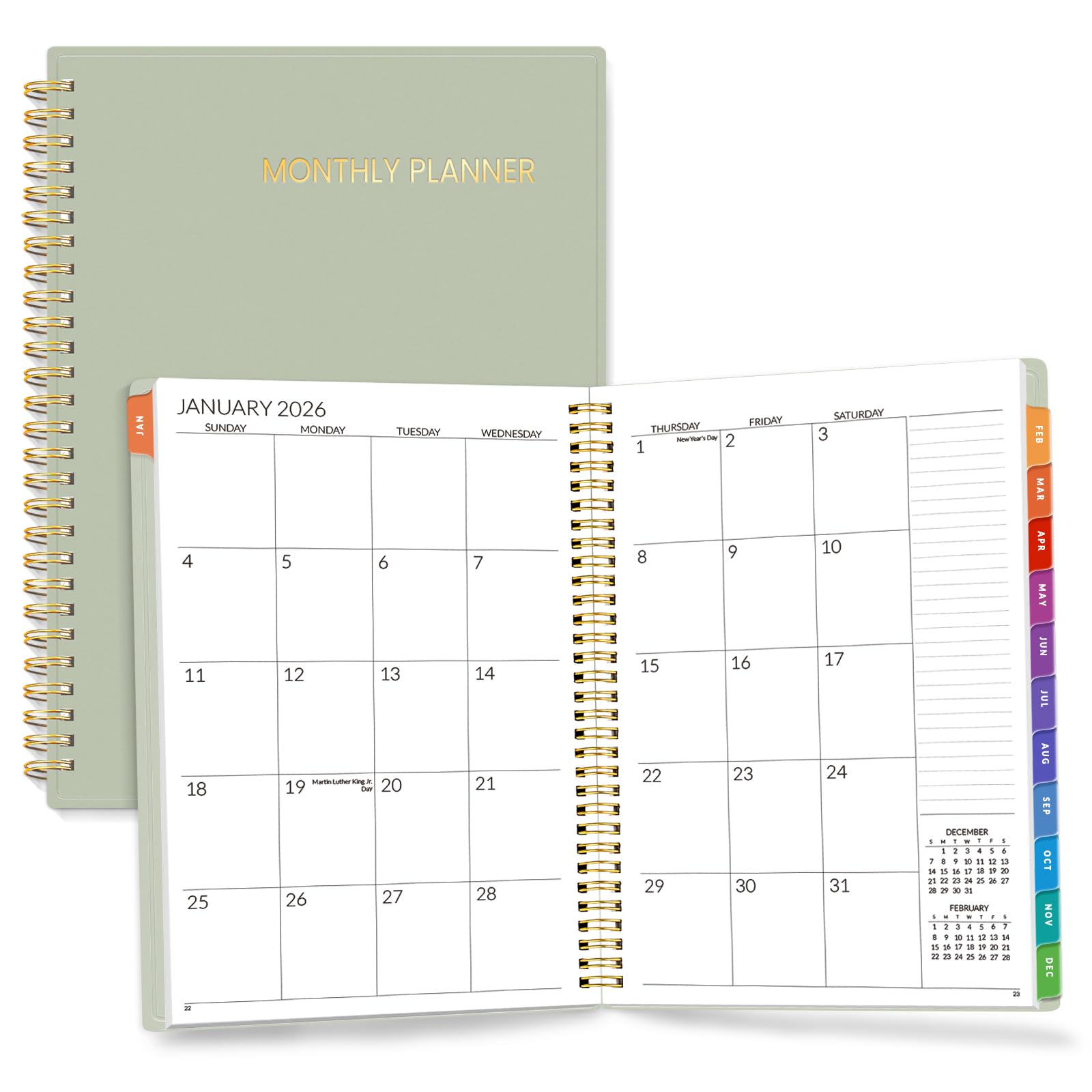 SUNEE 2026-2027 Planner - 24 Months (Jan 2026 - Dec 2027) - 7"x10" Monthly Spreads & Yearly Planner, Sage Green