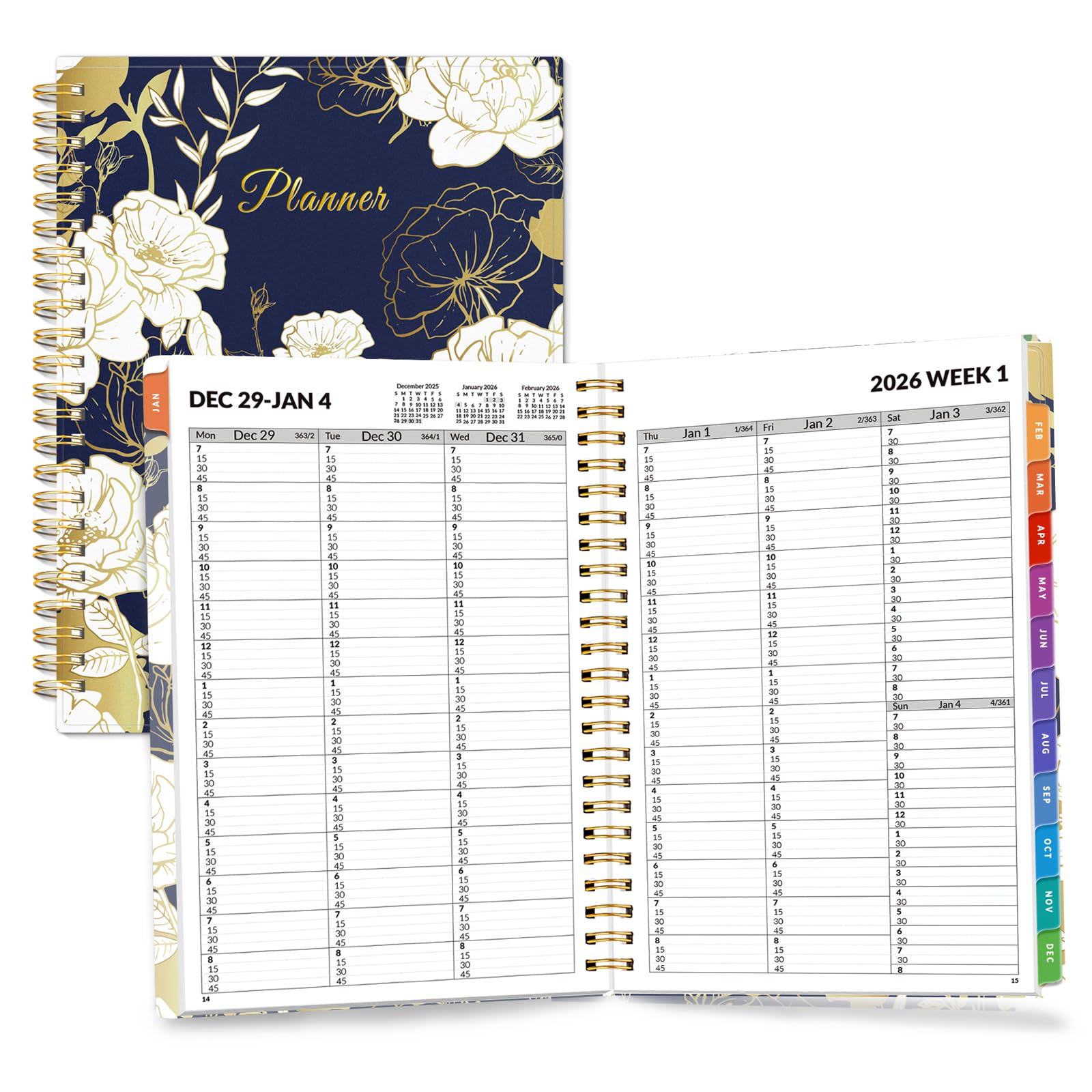SUNEE 2026 Appointment Book, Quarter-Hourly, Weekly & Monthly - from January 2026 - December 2026, 6.4"x8.3" Flexible Cover, Notes, Pockets, Bookmark, Spiral Binding, Vintage Floral
