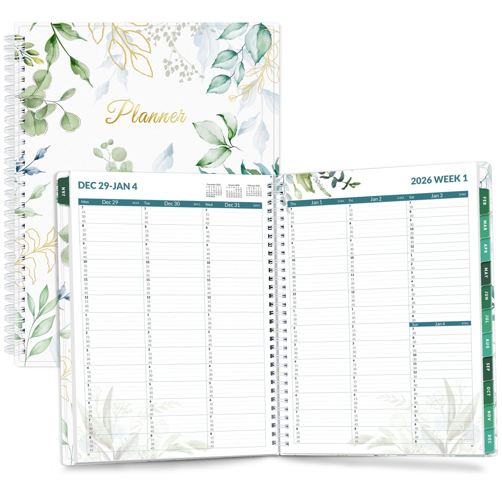 SUNEE 2026 Appointment Book, Quarter-Hourly, Weekly & Monthly - from January 2026 - December 2026, 8.5"x11" Weekly Planner, Flexible Cover, Note Pages, Pockets, Bookmark, Spiral Binding, Greenery
