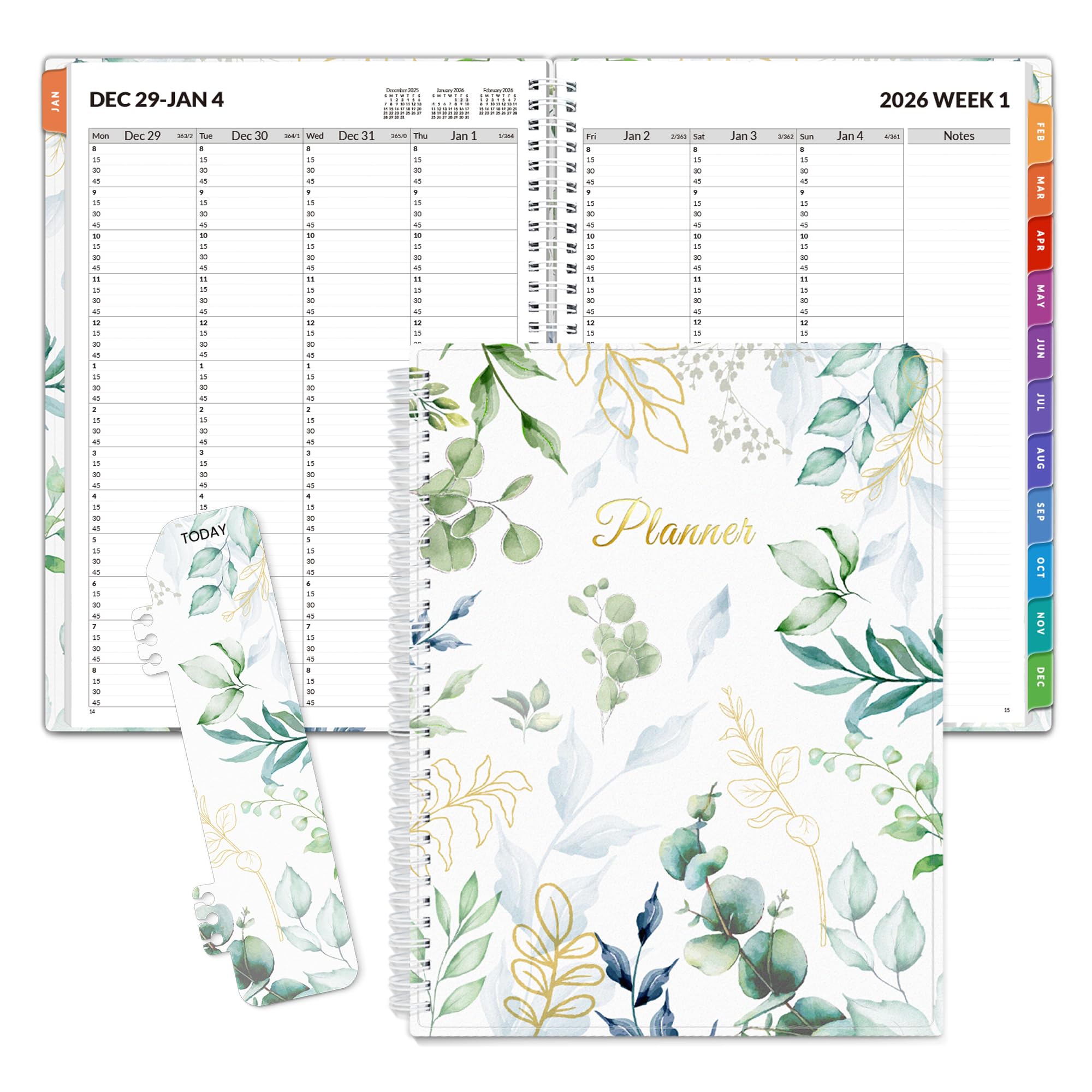 SUNEE 2026 Appointment Planner 15-Minute Time Block – Weekly & Monthly Spiral Organizer with Note Section – Thick Paper, Lay-Flat Bound – 8.5 x 11 for Office, School, Salon, Men & Women, Greenery