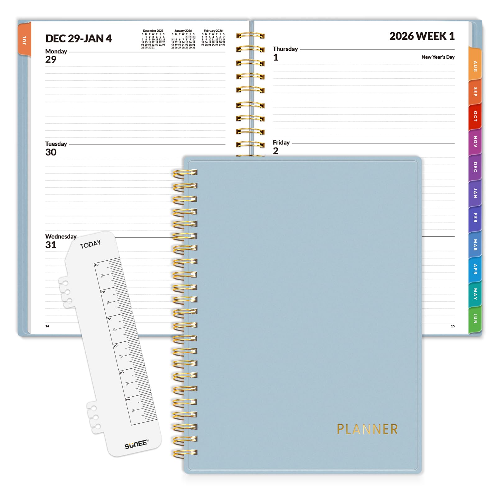 SUNEE 2026 Weekly and Monthly Planner - from January 2026 - December 2026, 6.4" x 8.3" Daily Agenda Planner with Monthly Tab, Flexible Cover, Note Pages, Pockets, Bookmark, Spiral Binding, Gray Blue