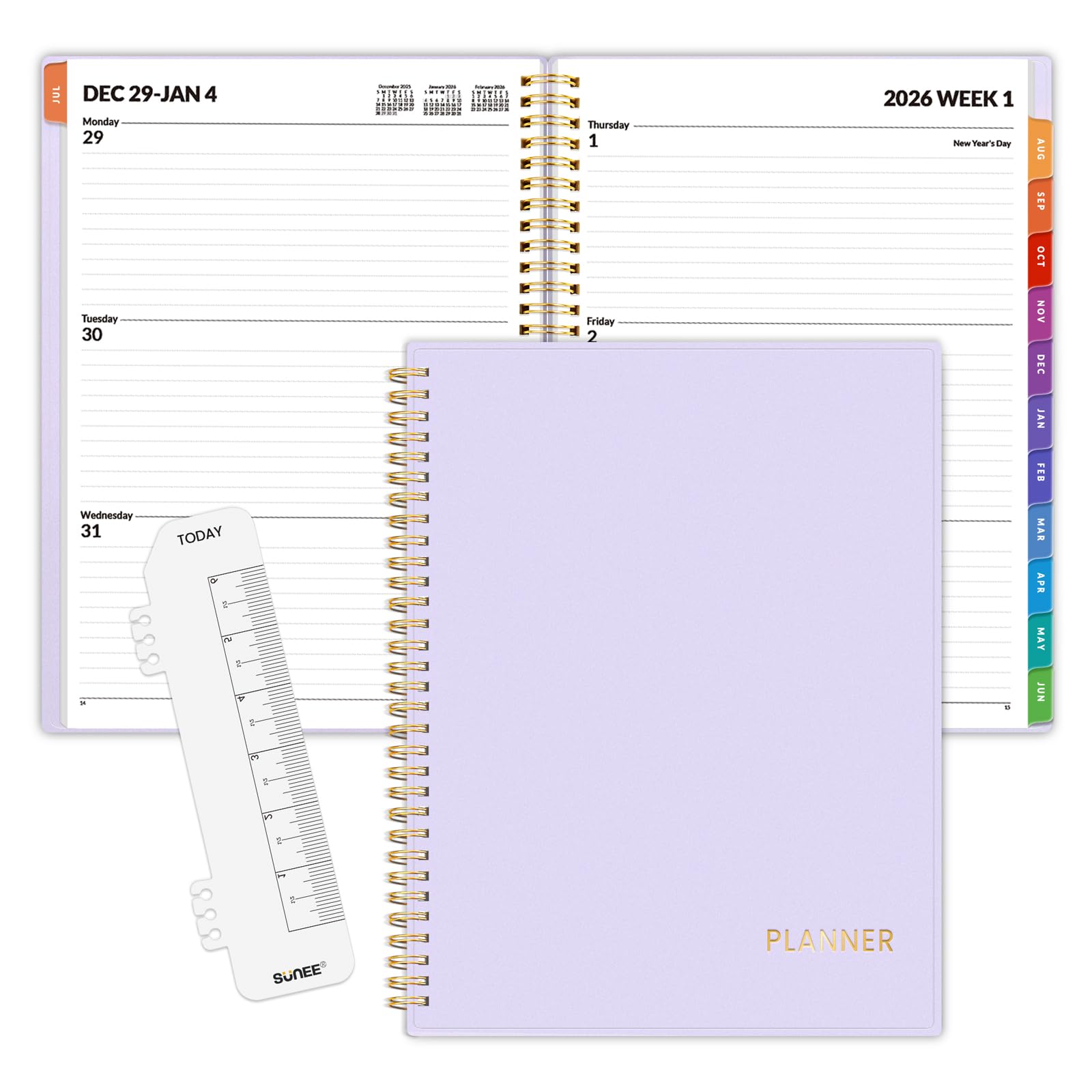 SUNEE 2026 Weekly and Monthly Planner - from January 2026 - December 2026, 8.5"x11" Daily Agenda Planner with Monthly Tab, Flexible Cover, Note Pages, Pockets, Bookmark, Spiral Binding, Purple