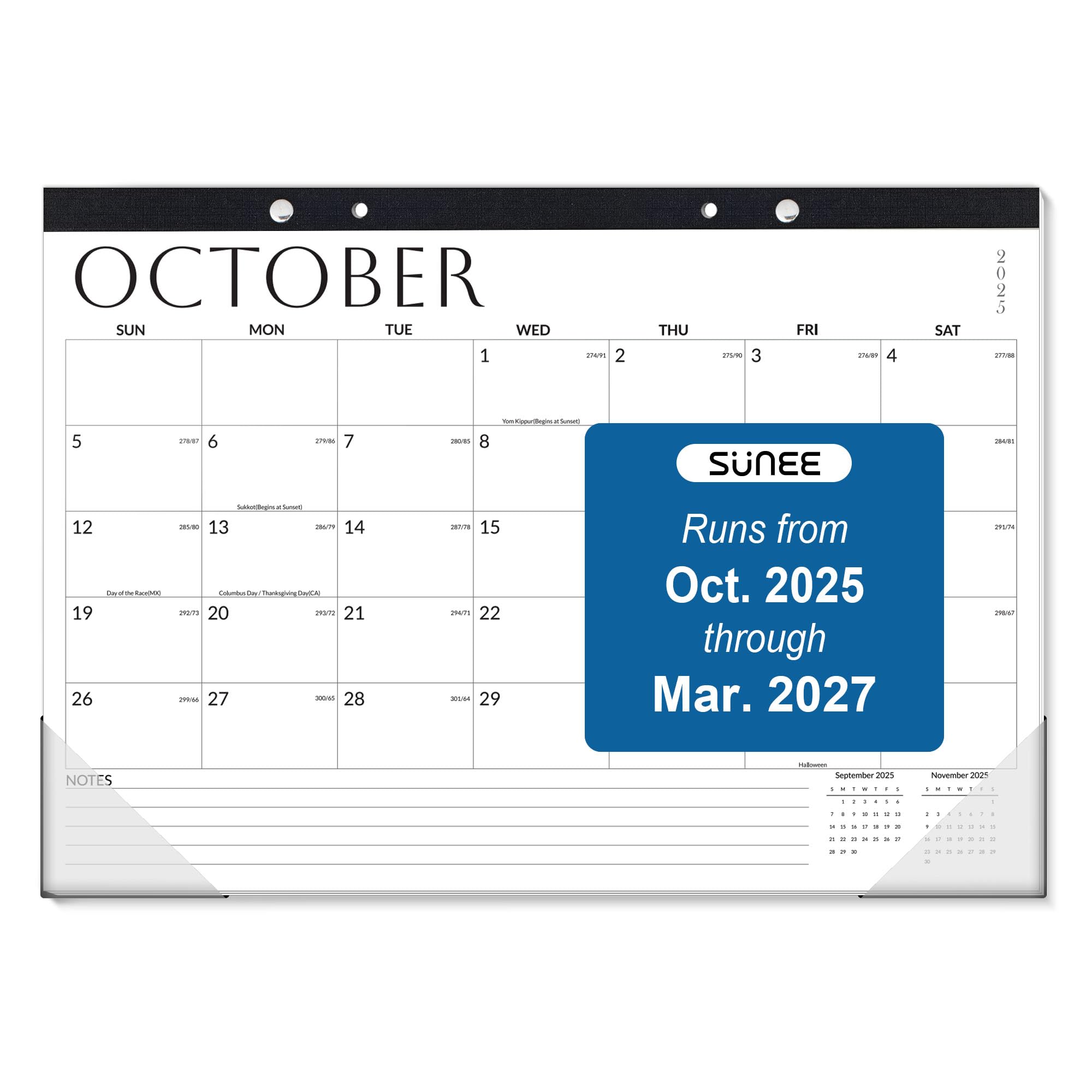 SUNEE Desk Calendar 2025-2026 - 18 Month Calendar Oct 2025 - Mar 2027, 17" x 12" Desktop Calendar with Notes, for Planning, Organizing in Family, School or Office, White 2026 Calendar