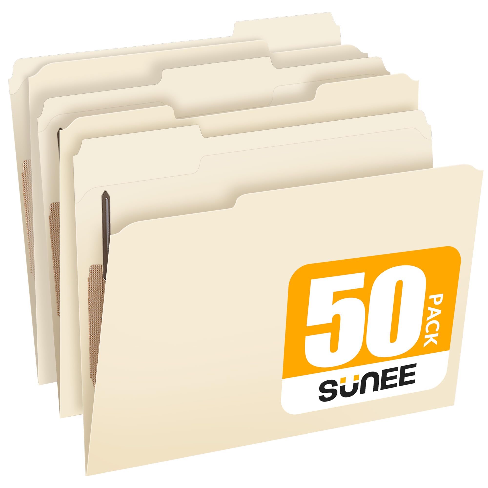 SUNEE File Folders with Fasteners, Manila Folders Letter Size, 2 Reinforced Fasteners, 1/3-Cut Tab, Manila, 50 Pack, Keep Organized for Your Office Documents School Files
