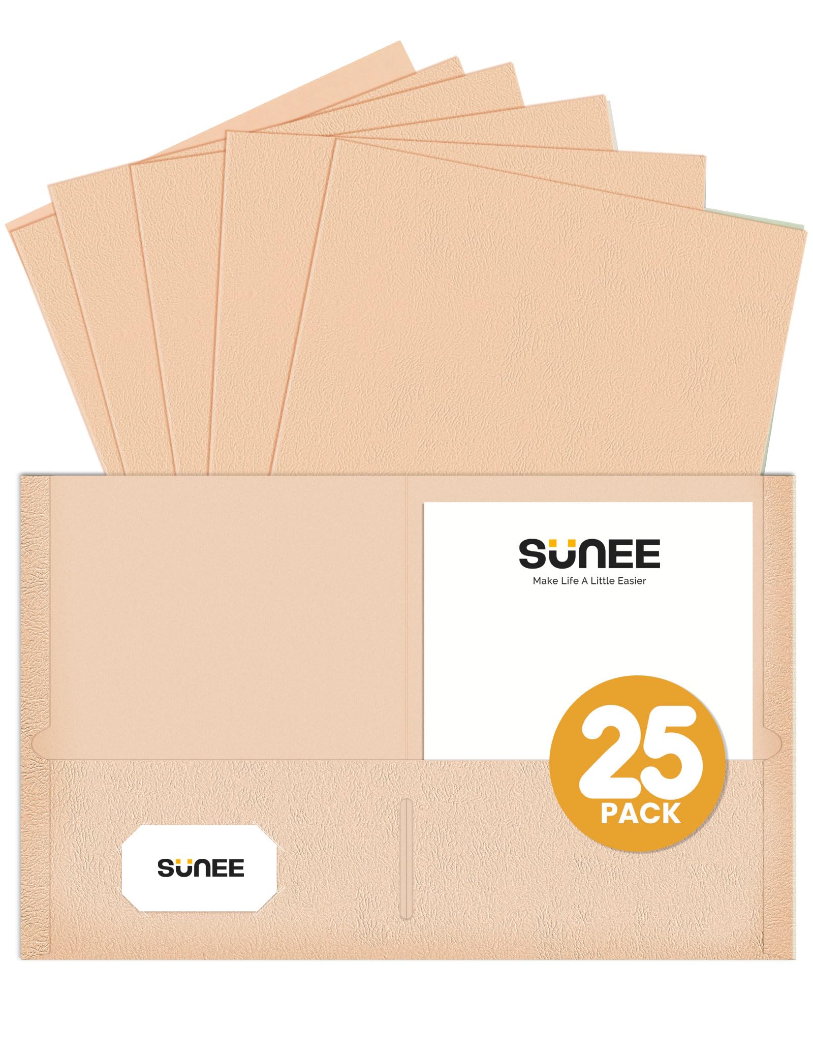 SUNEE Folders with Pockets offer a practical solution for organizing letter-size documents efficiently. This 25-pack features two-pocket folders crafted from durable textured paper in a subtle grayish green hue, suitable for school, office, home, or business use. The sturdy pockets securely hold papers, keeping important files neat and accessible. Designed for reliable everyday performance, these folders help maintain professional organization with a tactile finish that resists wear and tear.