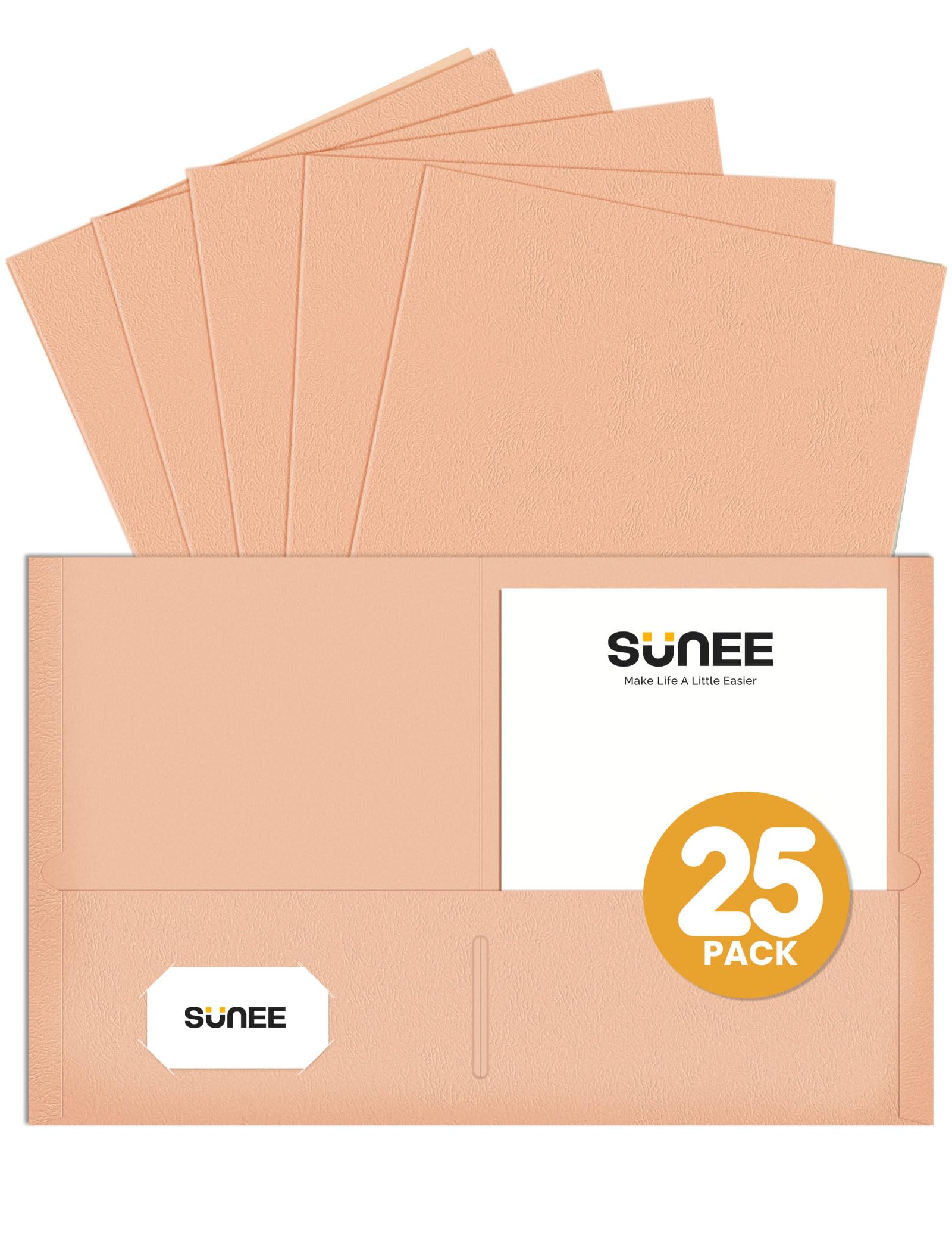 SUNEE Folders with Pockets (25 Pack, Warm Brown) offer durable, textured paper construction designed to hold letter-size documents securely. Each folder features two pockets ideal for organizing papers in school, office, or home settings. The warm brown color provides a professional, understated look, making these folders a reliable choice for managing paperwork efficiently across various business or personal applications.