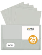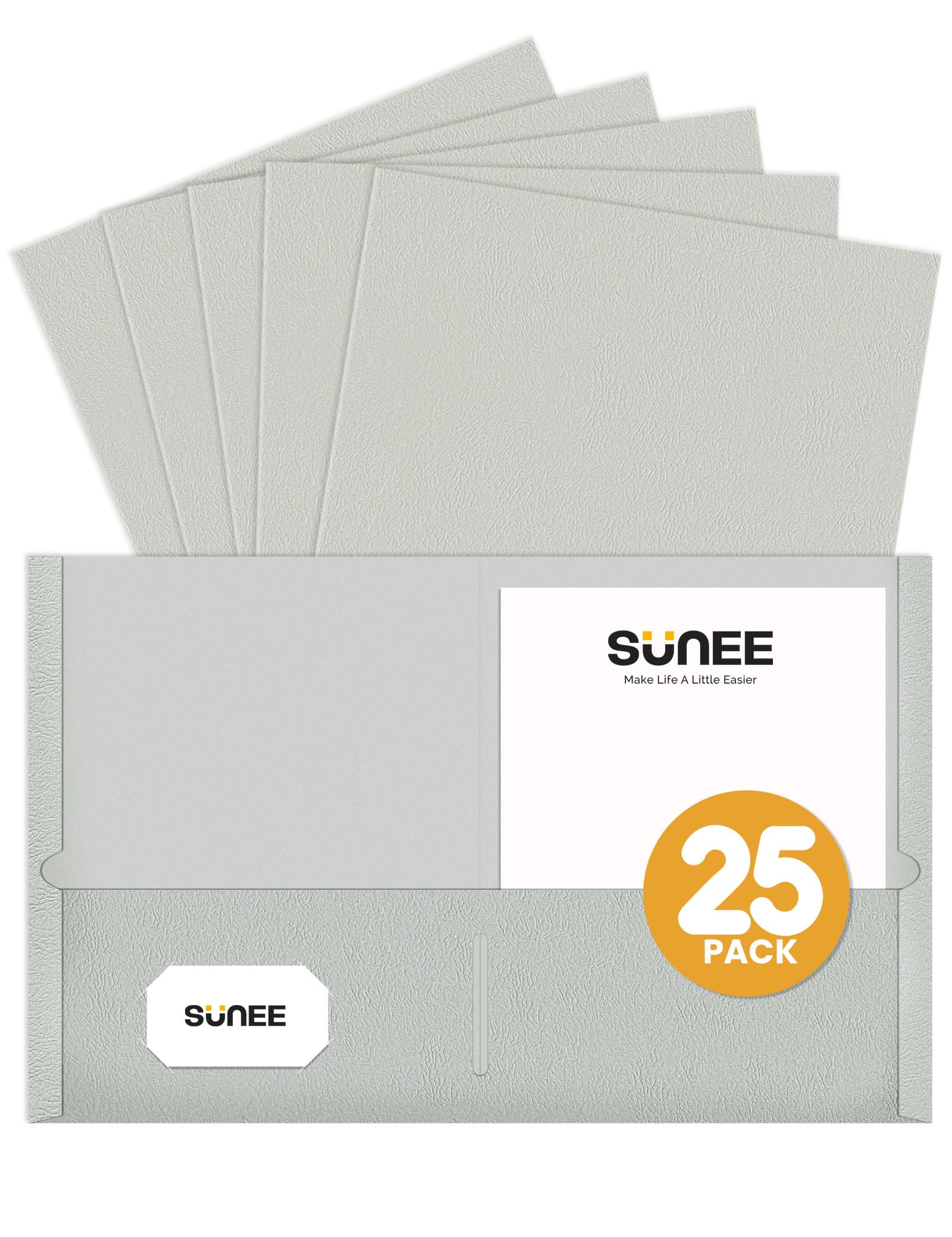 SUNEE Folders with Pockets offer durable organization in a warm gray textured paper finish. Each pack includes 25 two-pocket folders designed to fit letter-size documents, making them ideal for school, office, home, or business use. Their sturdy construction keeps papers secure and easily accessible, ensuring a professional presentation and efficient file management. These folders provide a reliable solution for organizing important documents with both functionality and style.