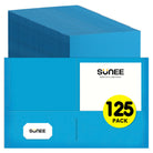 The SUNEE 2-pocket folders come in a pack of 125, each designed to hold letter-sized paper securely. Crafted in a vibrant blue, these folders feature two pockets for organizing documents efficiently, making them ideal for school, office, home, or business use. Their durable construction helps protect papers from damage while simplifying filing and transport. This bulk pack is perfect for maintaining consistent organization across multiple projects or departments.