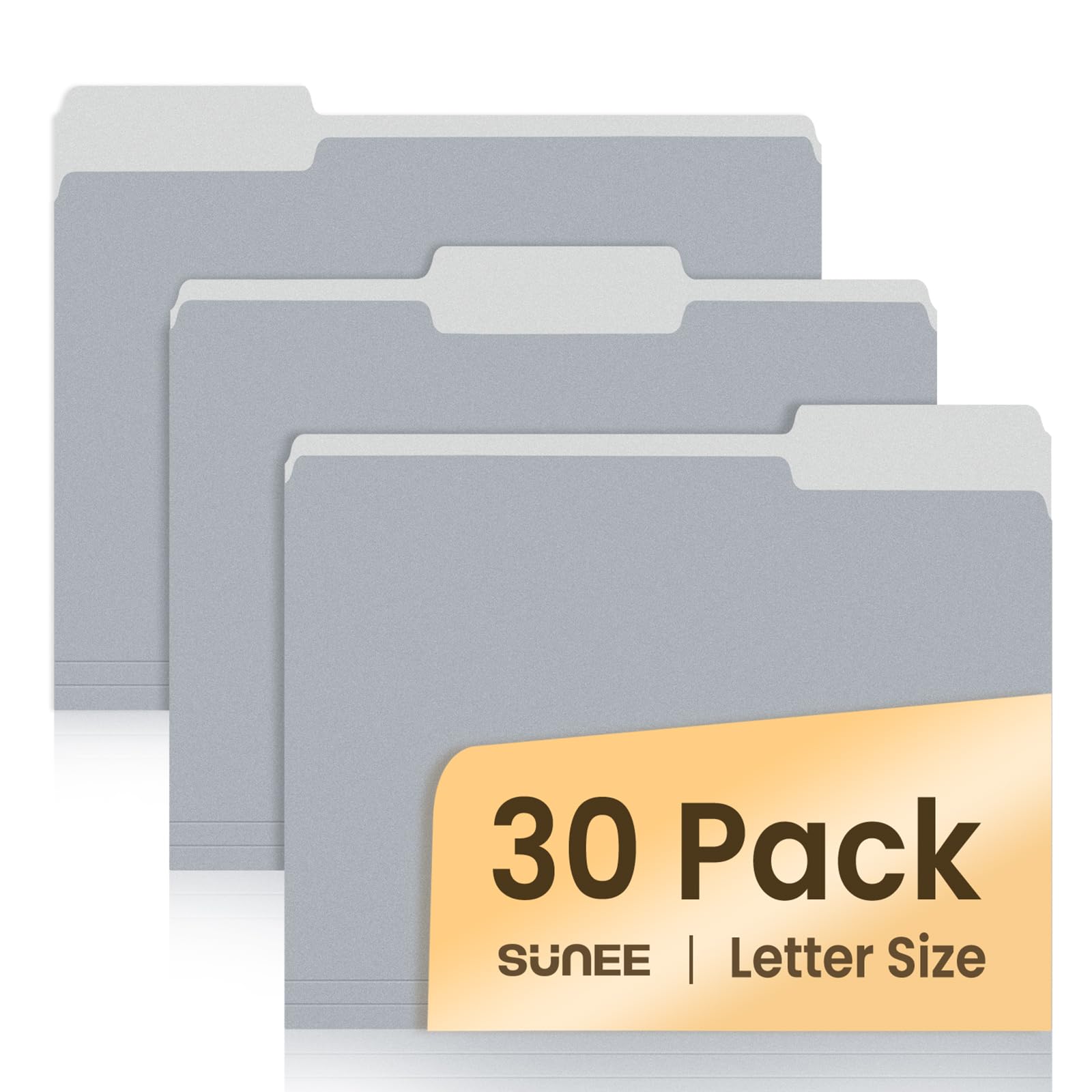 SUNEE Gray File Folders, 30 Pack Manila Folders 8.5x11 with 1/3 Cut Tabs
