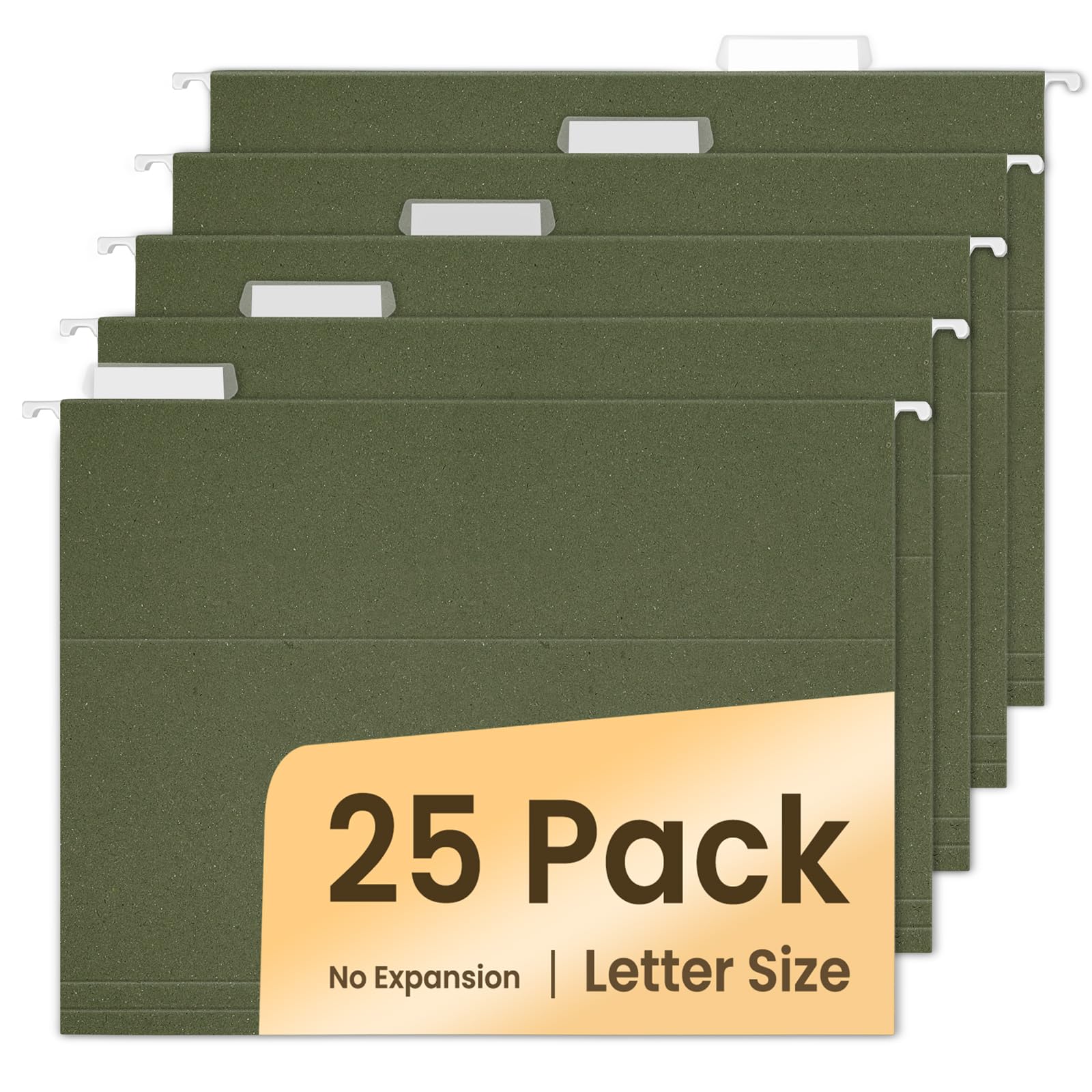 Organize your bulky documents efficiently with the SUNEE Hanging File Folders 25-pack. These reinforced, letter-sized folders feature adjustable 1/5-cut tabs for customized labeling and quick identification. Designed to fit standard filing cabinets, their durable construction ensures long-lasting use and reliable support for heavy files. The professional green color offers a clean, uniform look, making them ideal for both office and home use where durable, high-capacity file storage is essential.