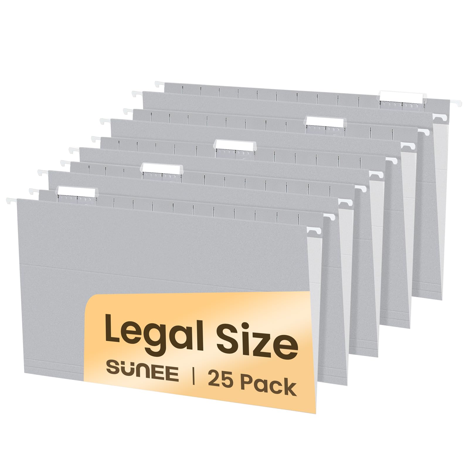 SUNEE Hanging File Folders are designed to fit legal-size documents, providing a reliable and efficient filing system for both home and office use. This 25-pack features 1/5-cut tabs that allow clear labeling and easy access, helping you maintain an organized workspace. Crafted in gray, these durable folders ensure your files are secure and neatly arranged, making bulk document management straightforward and professional. Ideal for improving workflow and keeping important papers within reach.