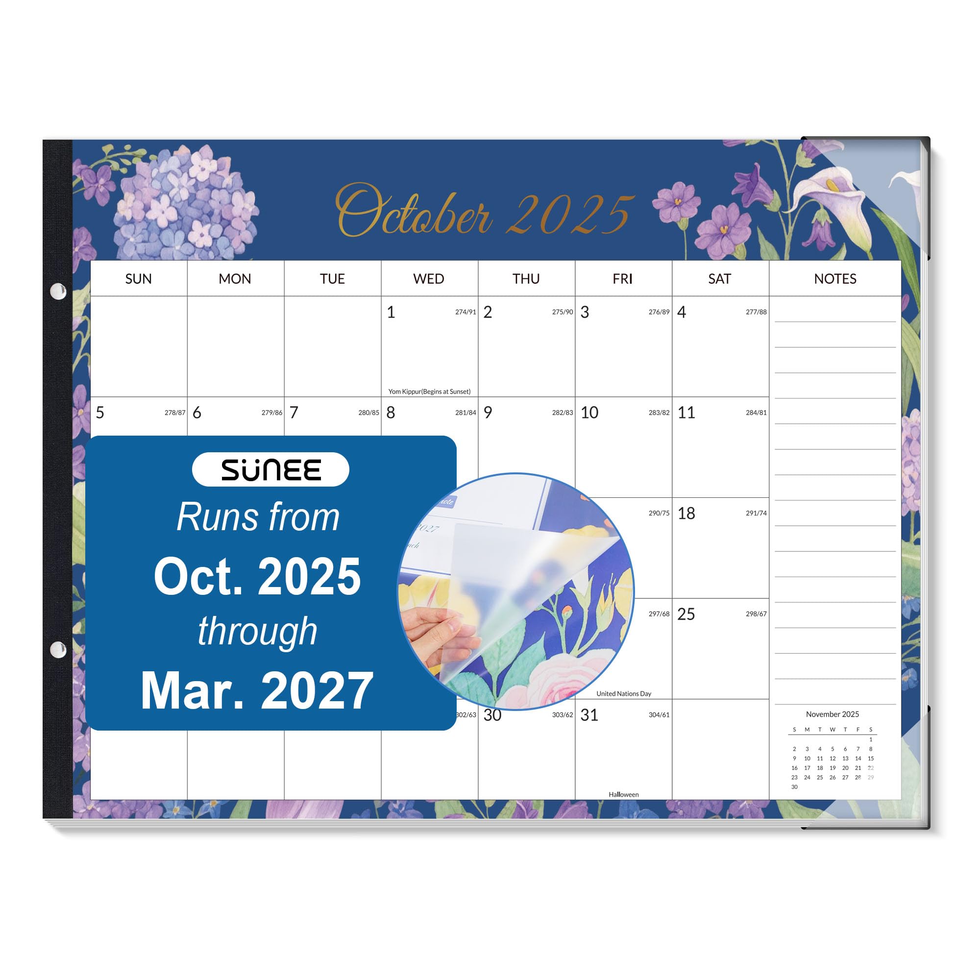 SUNEE Large Desk Calendar 2025-2026 22x17 from October 2025 to March 2027, Extra Large Desktop Monthly Calendar Pad 18 Months For Teacher or Family, Desk Top, Floral