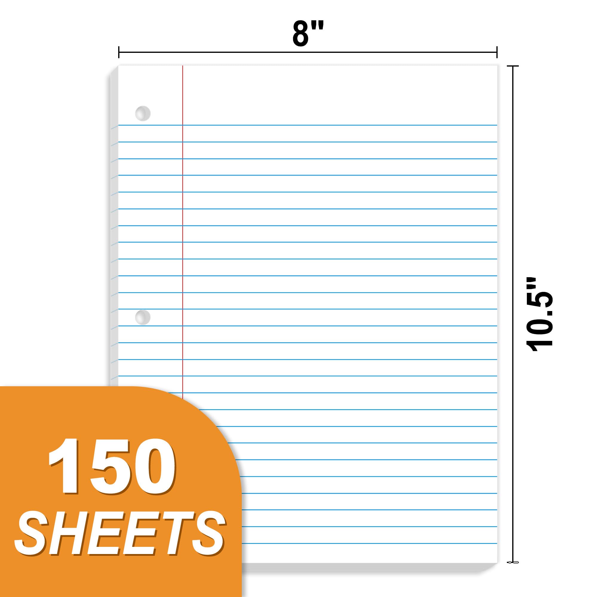 - Package Contains: You will receive 3 packs of 10.5x8 inch letter size loose leaf paper. Each pack contains 150 sheets of wide ruled paper, for a total of 450 sheets of wide ruled paper. The weight is 56 grams of paper.