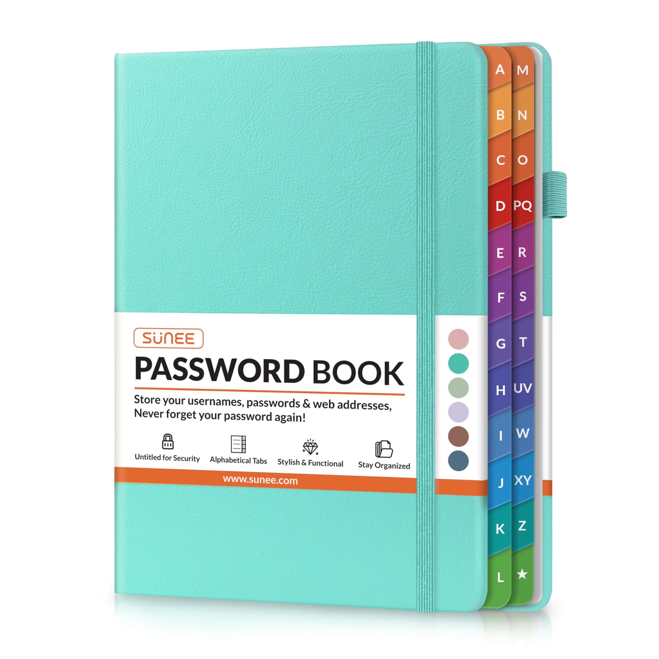 • Colorful A–Z Tabs – Quickly organize and find login details
