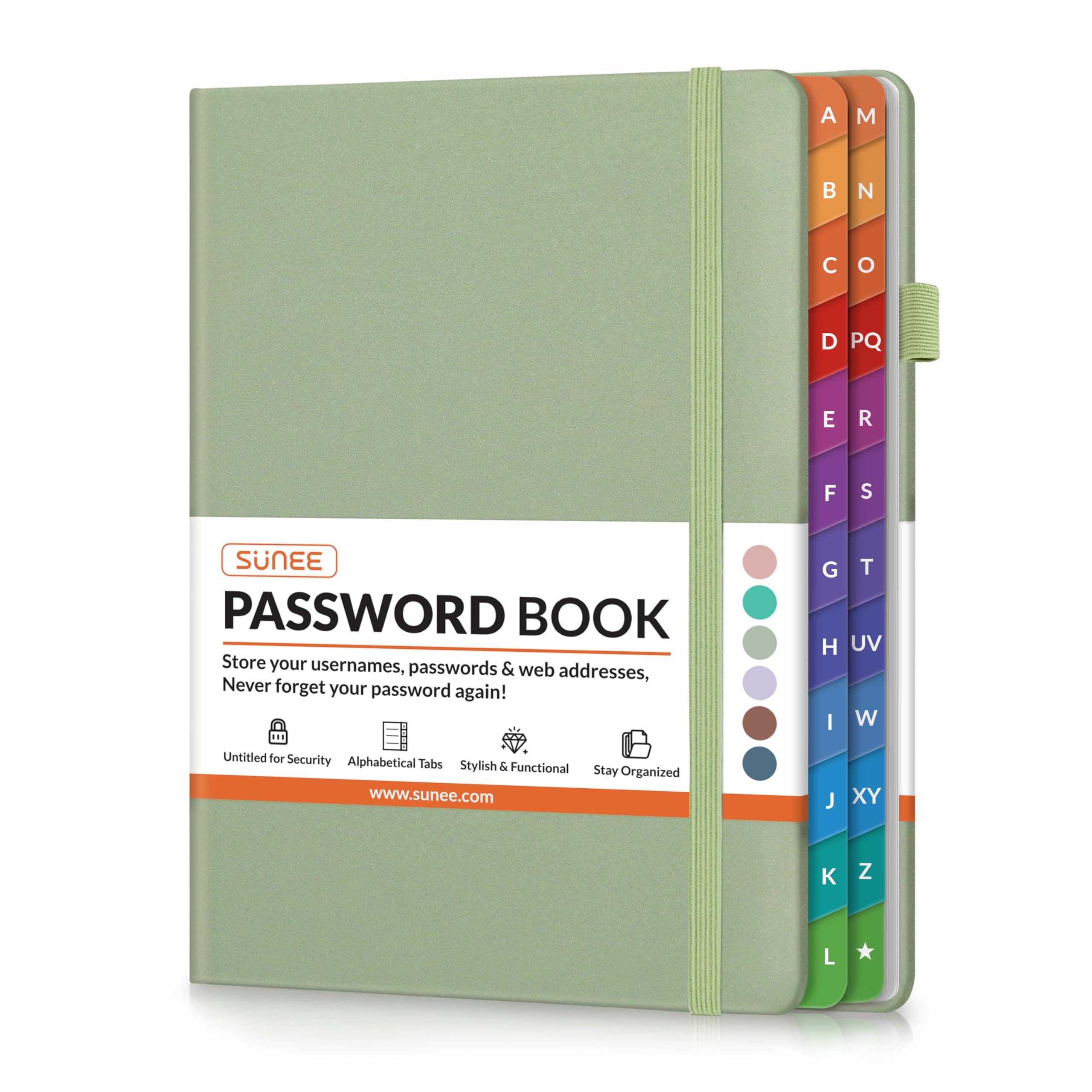 SUNEE Password Keeper Book with A–Z Tabs, Medium Password Book for Seniors, 5.3”×7.7” Sage Green