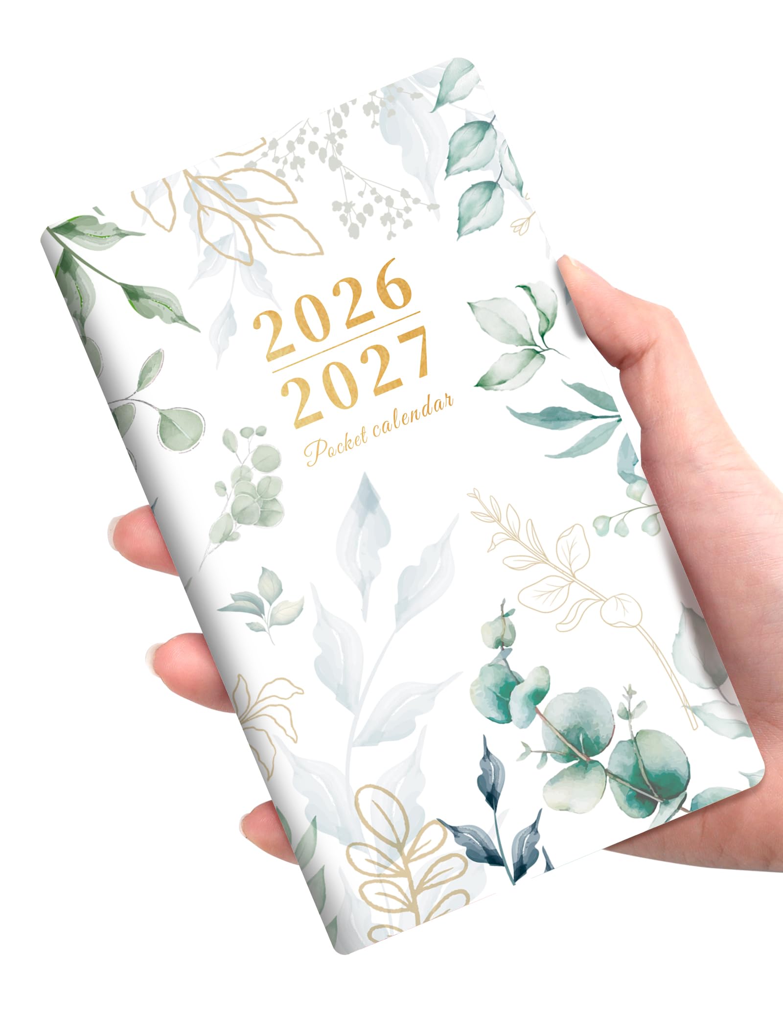 SUNEE Pocket Calendar 2026-2027 - Two Year Monthly Planner Small Calendar 3.5" x 6" Organizer for Daily & Yearly Schedule - Compact Agenda Notebook for School, Work, Women, Greenery
